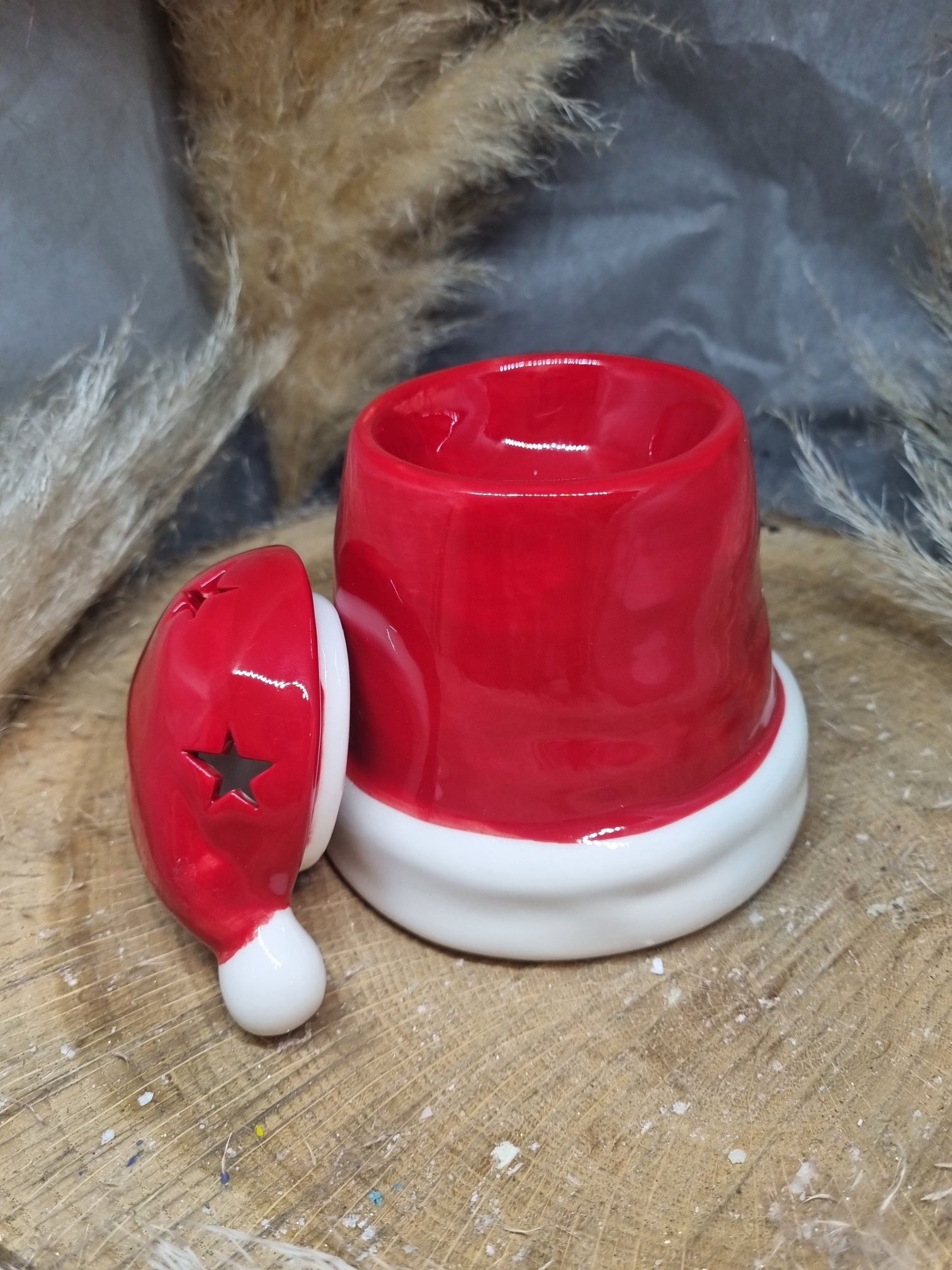 Le brûle-parfum en céramique Chapeau du Père Noël peut être utilisé en objet déco pour votre coin préféré ou en brûleur à cires et permettant de diffuser vos parfums avec nos fondants parfumées ( composé de Cire Végétale de soja Parfum de Grasse sans substances CMR,