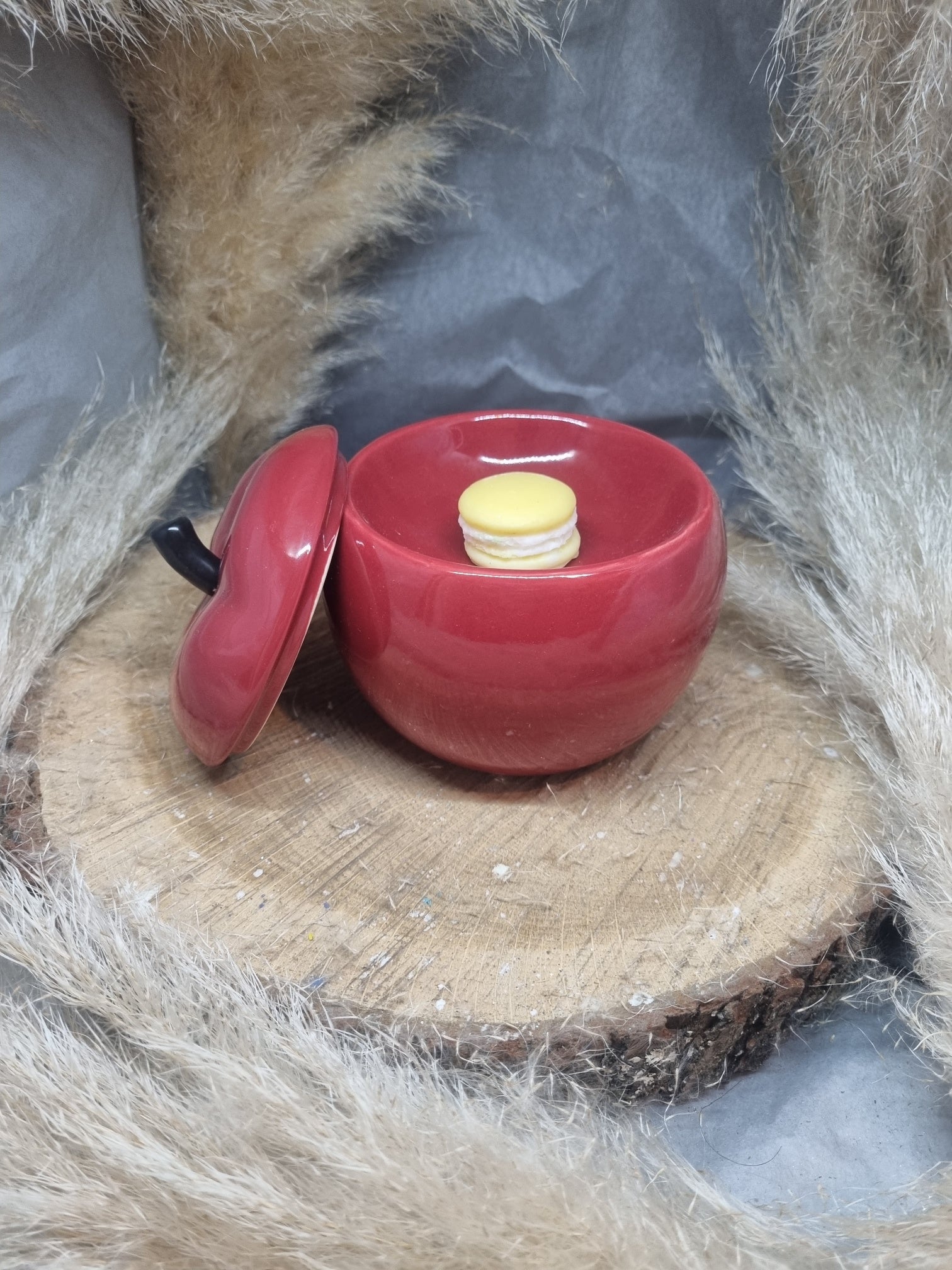 Le brûle-parfum en céramique Pomme d'Amour peut être utilisé en objet déco pour votre coin préféré ou en brûleur à cires et permettant de diffuser vos parfums avec nos fondants parfumées ( composé de Cire Végétale de soja Parfum de Grasse sans substances CMR,