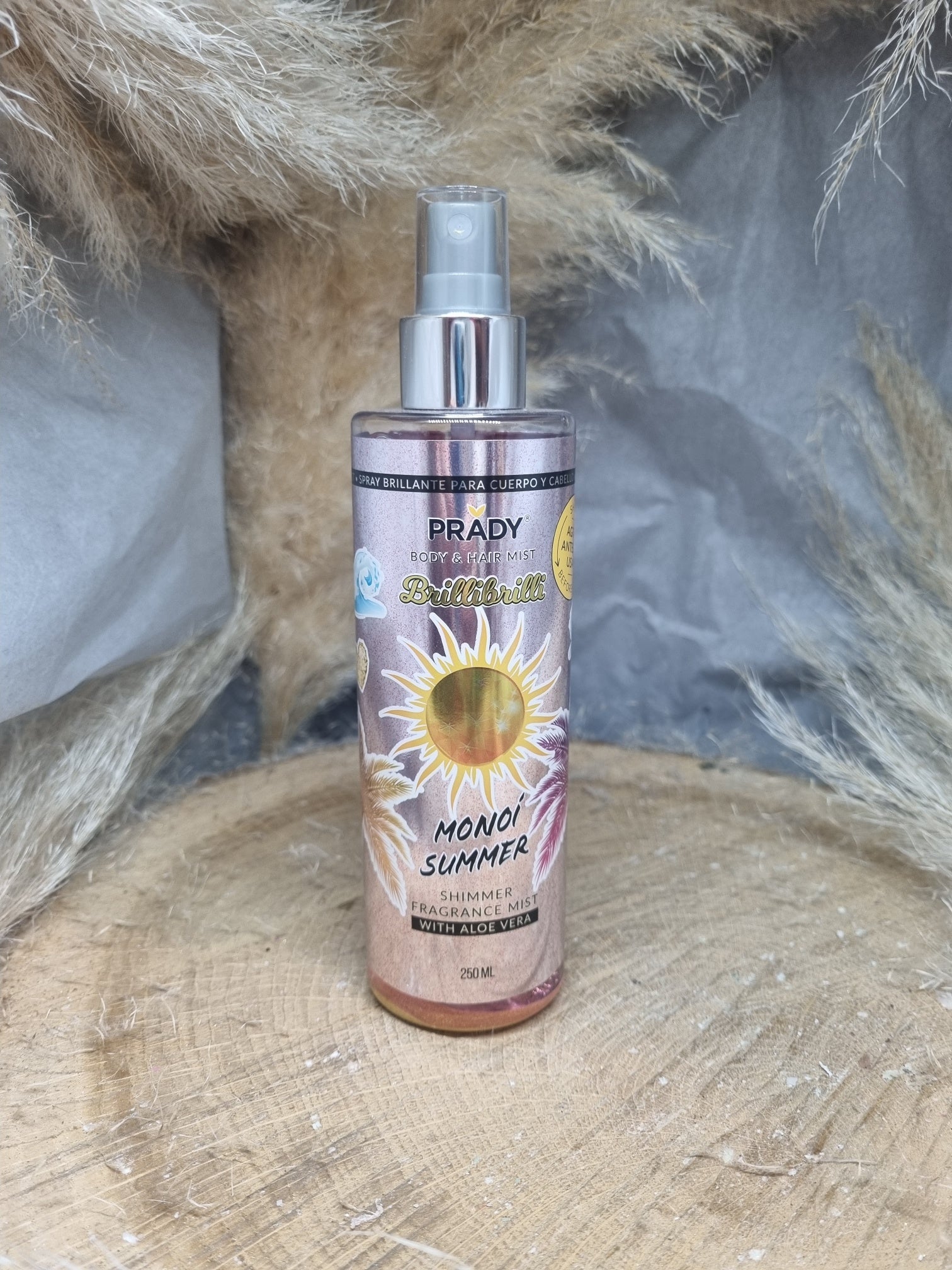 La brume Brume Scintillante Prady Monoi summer laisse des paillettes scintillantes sur le corps et les cheveux250 ML